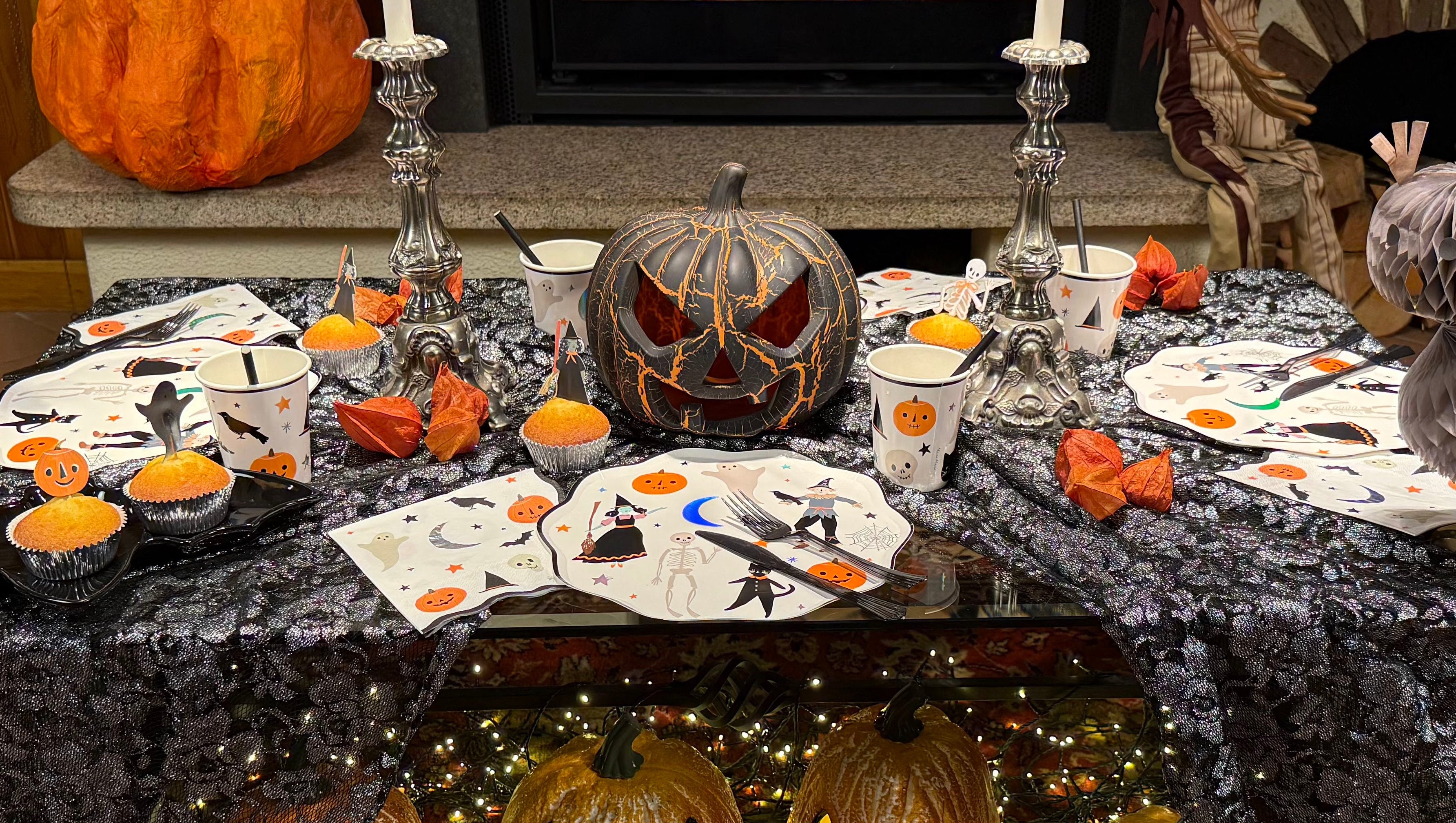 Una tavola che celebra la magia dell'atmosfera di Halloween, tra zucche luminose e dettagli giocosi.