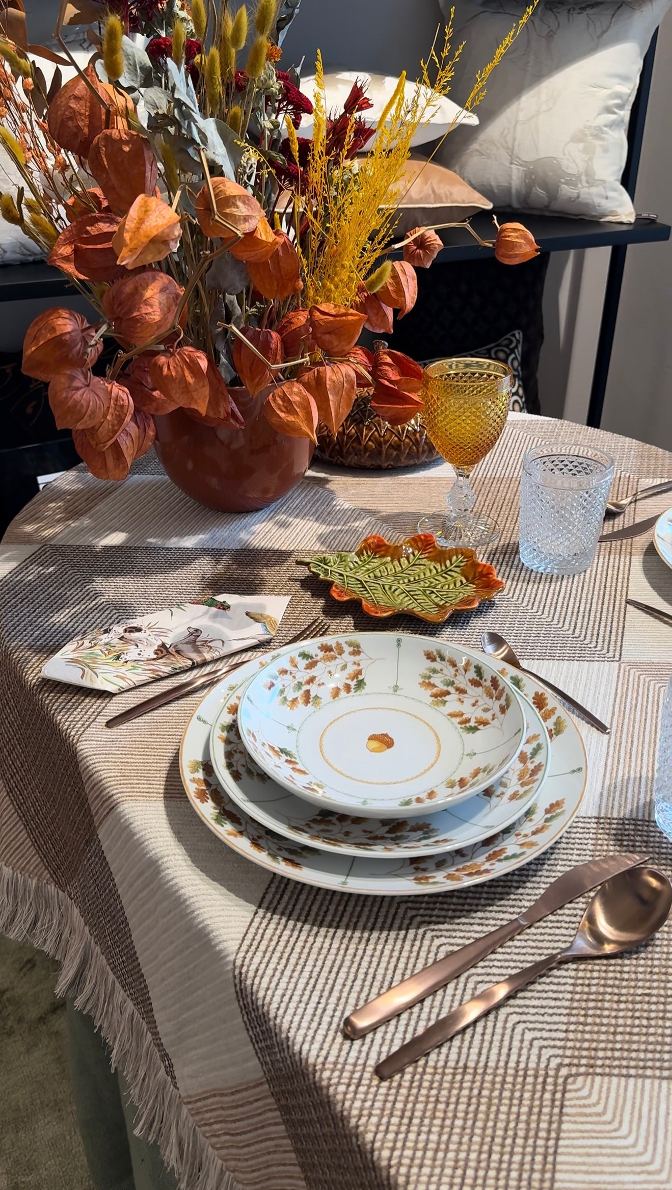 Una tavola che racconta la quiete del cambiamento attraverso dettagli raffinati e tonalità autunnali, dove ogni elemento diventa parte di un equilibrio sensoriale e autentico.