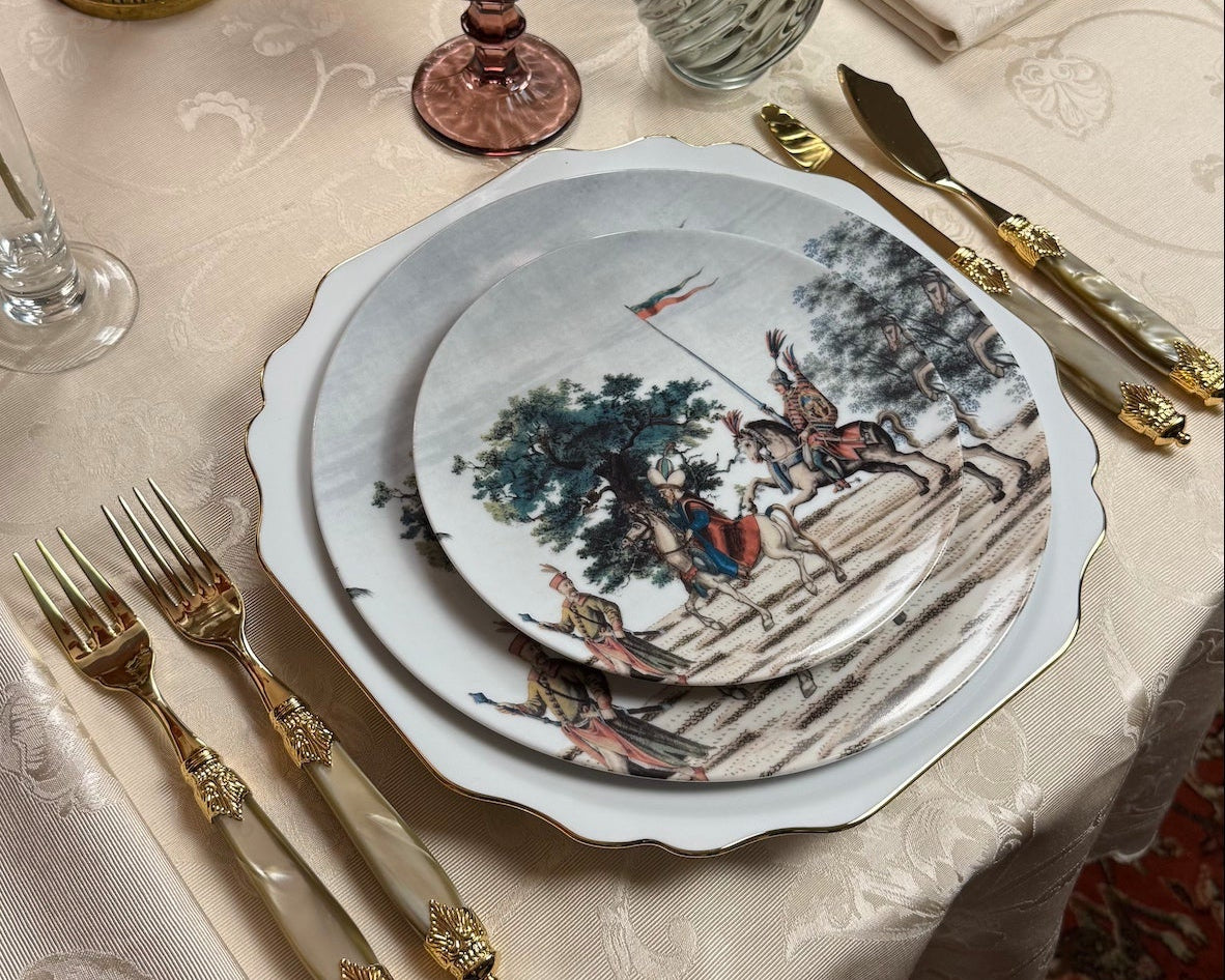 I piatti illustrati diventano pagine di viaggio, i calici si accendono di riflessi caldi e informali e ogni dettaglio invita a condividere storie, idee e ispirazioni che nascono attorno alla tavola.